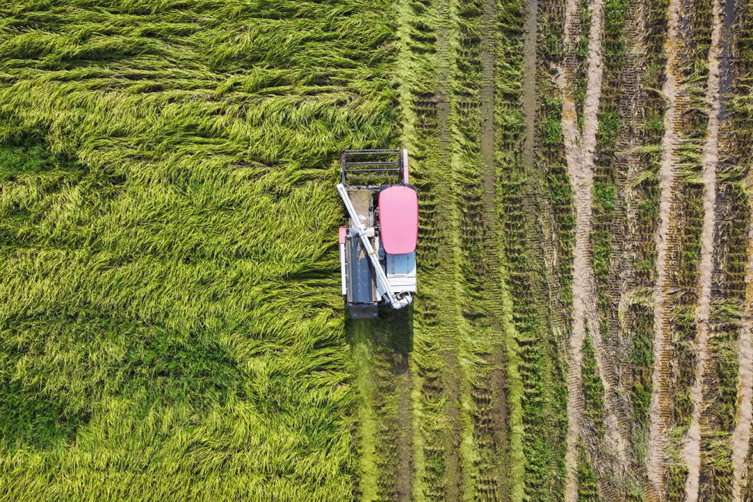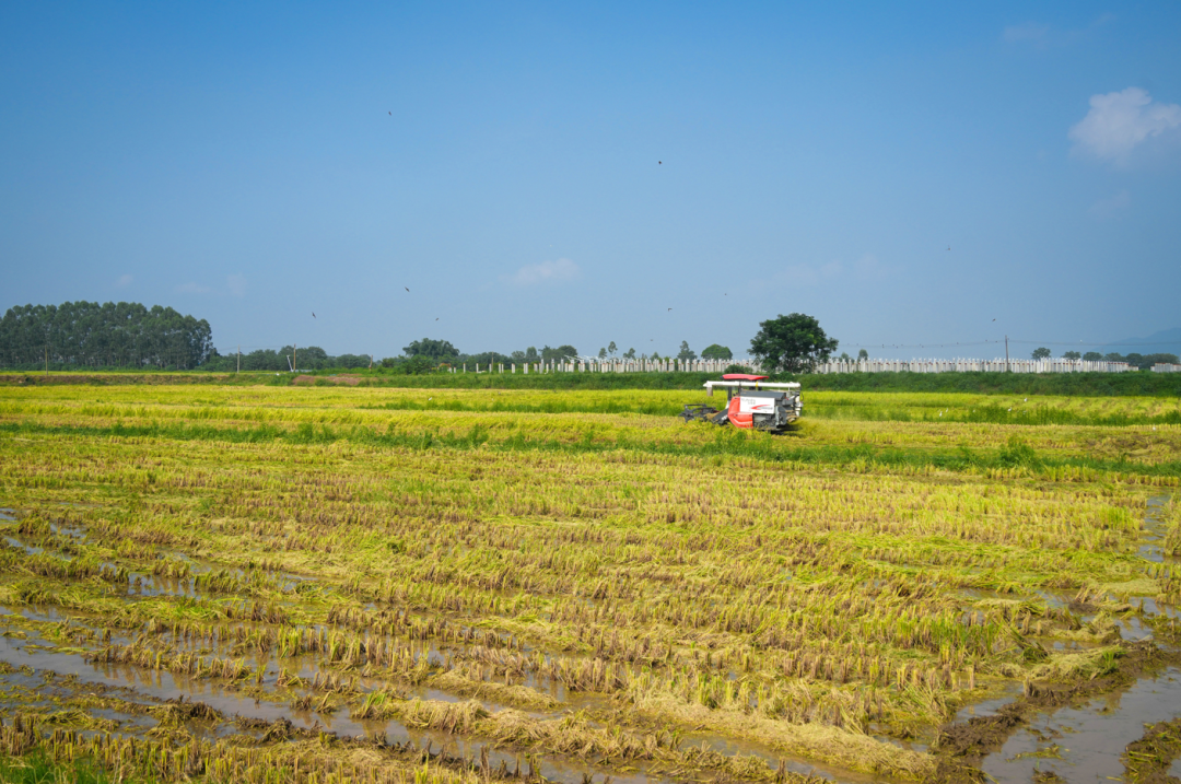 收割机在田间来回穿梭,