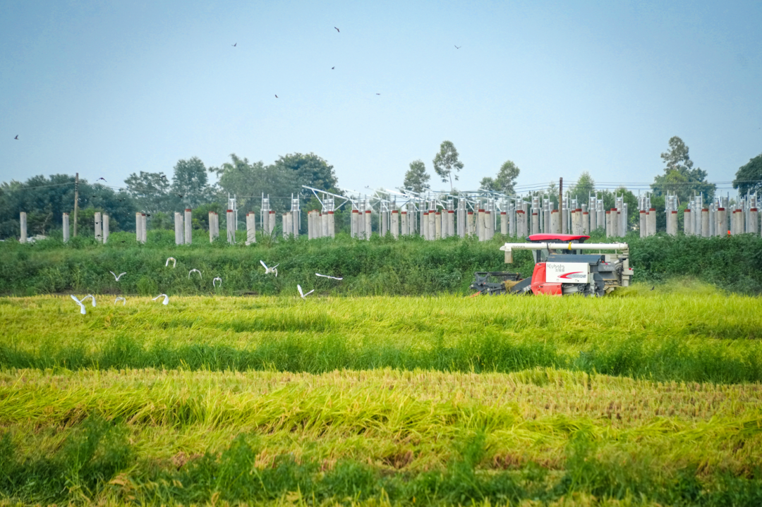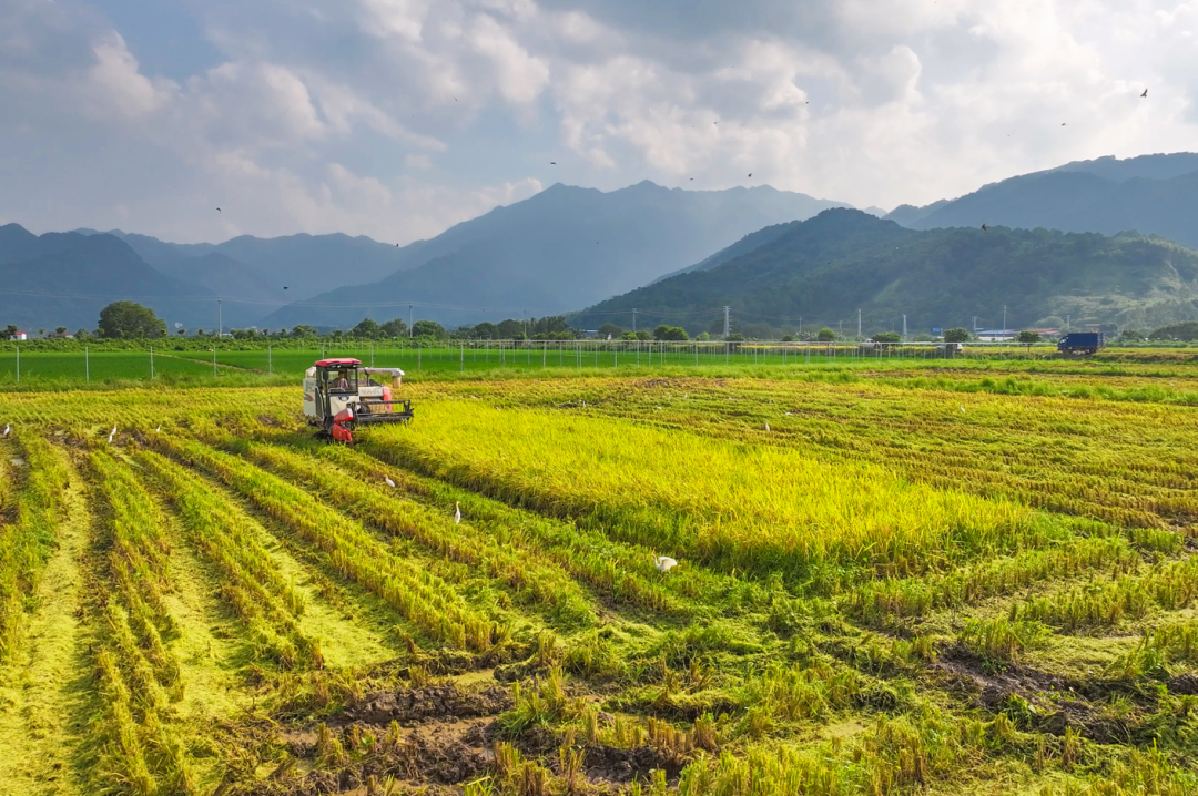 这片节水抗旱稻正加紧收割。