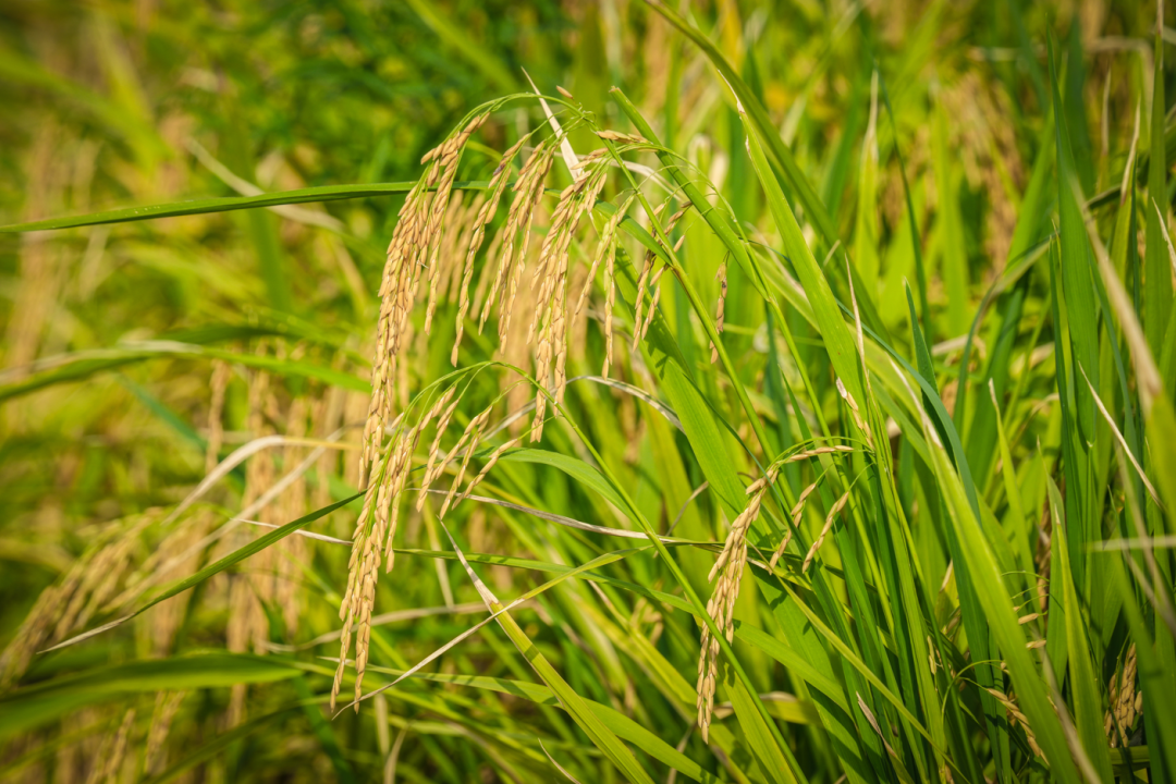 沉甸甸的金色稻穗随风摇曳,